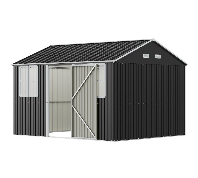 Living and Home 12′ x 10′ Metal Apex Single Hinged Door Roof Garden Tool Shed – Anthracite