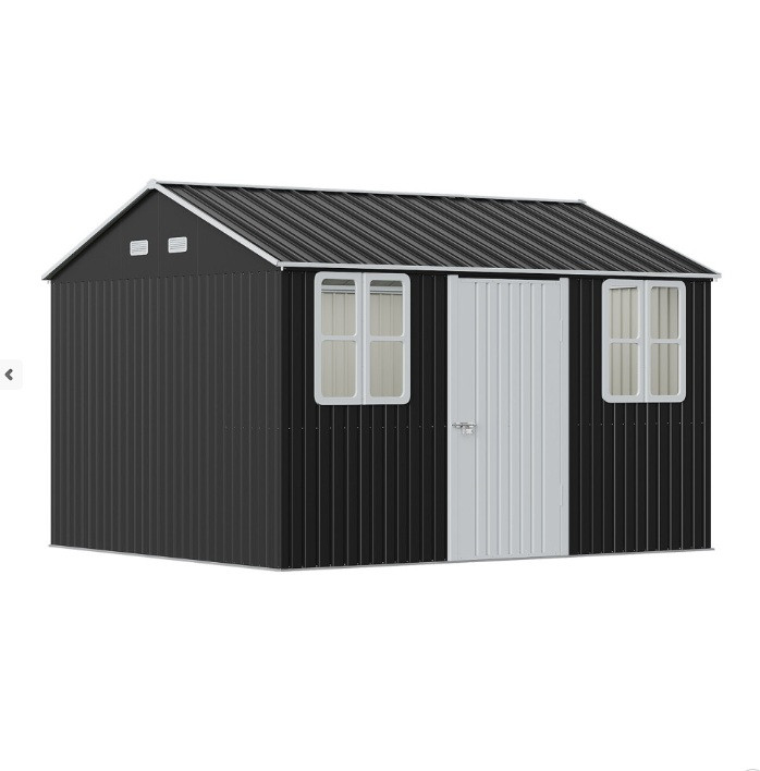 Keep your garden tools organised and protected with the Living and Home 12′ x 10′ Metal Apex Single Hinged Door Roof Garden Tool Shed – Anthracite.