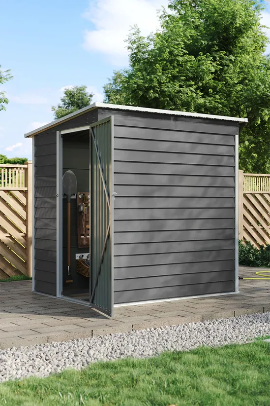 With a sloping pent roof, rainwater runs off smoothly to keep the interior dry. Made from durable metal, this shed is built to withstand the elements season after season.