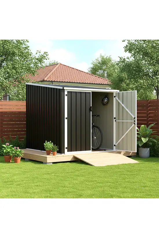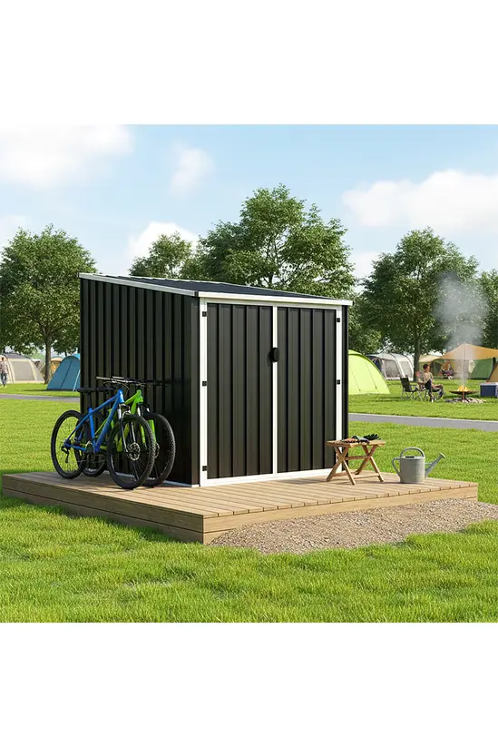 Designed specifically for cycling enthusiasts, this Living and Home 5’x7′ Metal Bicycle Shed – Anthracite and White serves as both a guardian for your bikes and a seamless part of your tidy yard.