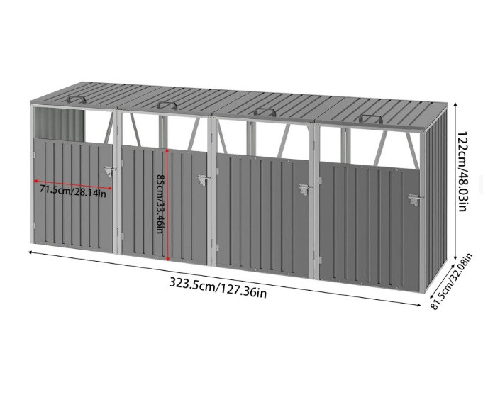 Fits 4 x Standard Wheelie Bin ( 107cm Height x 58cm Width x 74cm Depth)