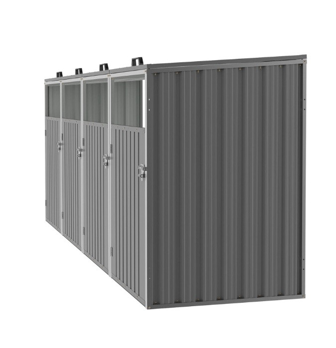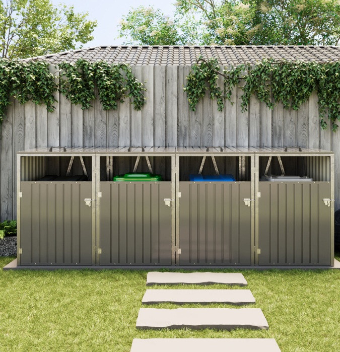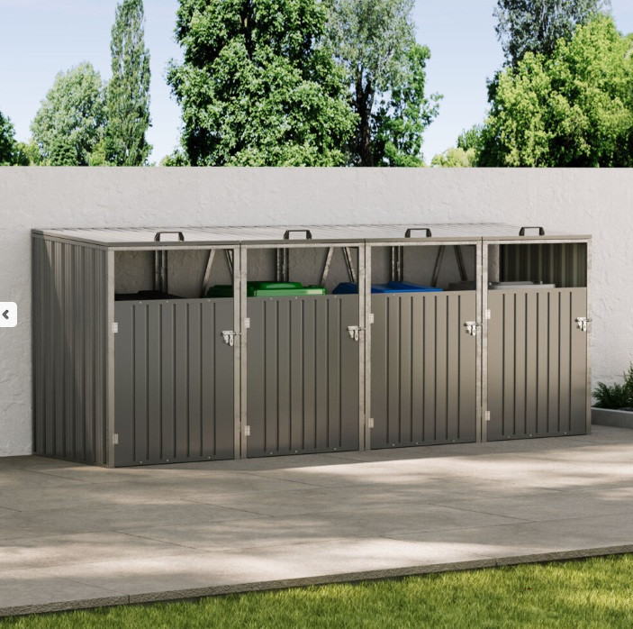 The Living and Home Quadruple Metal Bin Store – Light Grey offers a stylish and practical solution! Keep your bins neatly hidden away, protected from the elements, and out of sight.