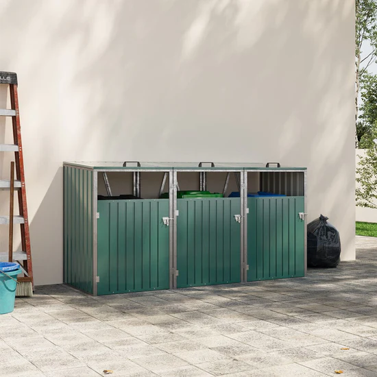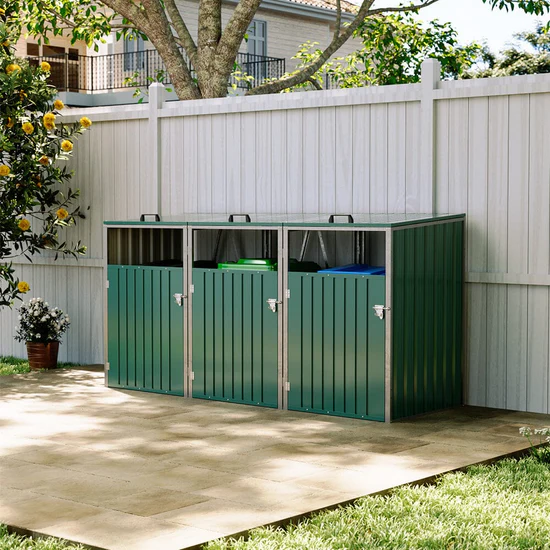 The Living and Home Triple Metal Bin Store – Green offers a stylish and practical solution! Keep your bins neatly hidden away, protected from the elements, and out of sight.