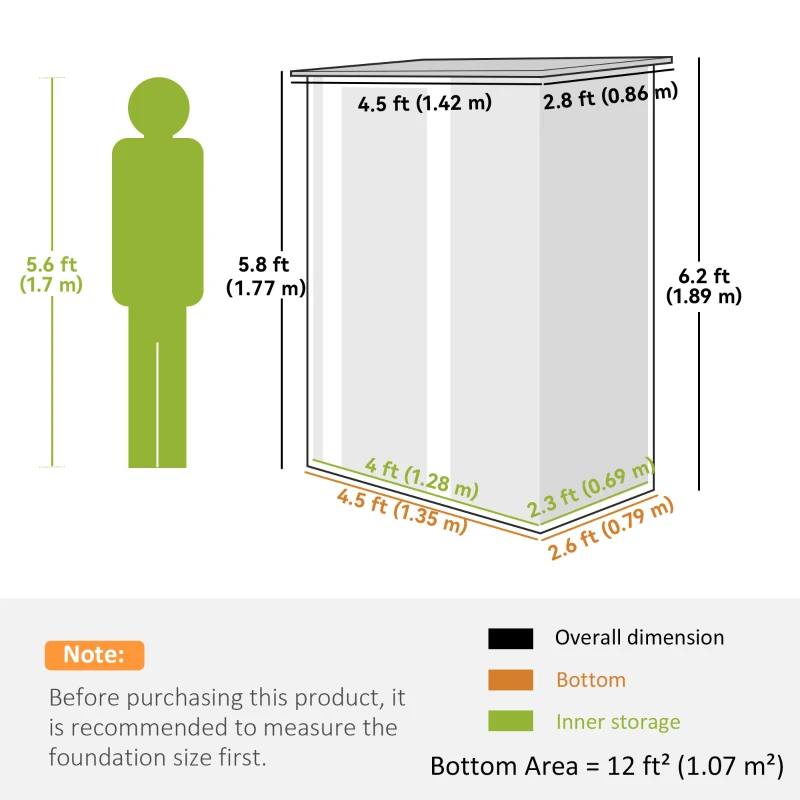 Open inner storage: This outdoor shed provides plenty of room in your garden for keeping tools, equipment and anything you need to be kept dry and protected. Foundation kit NOT included.