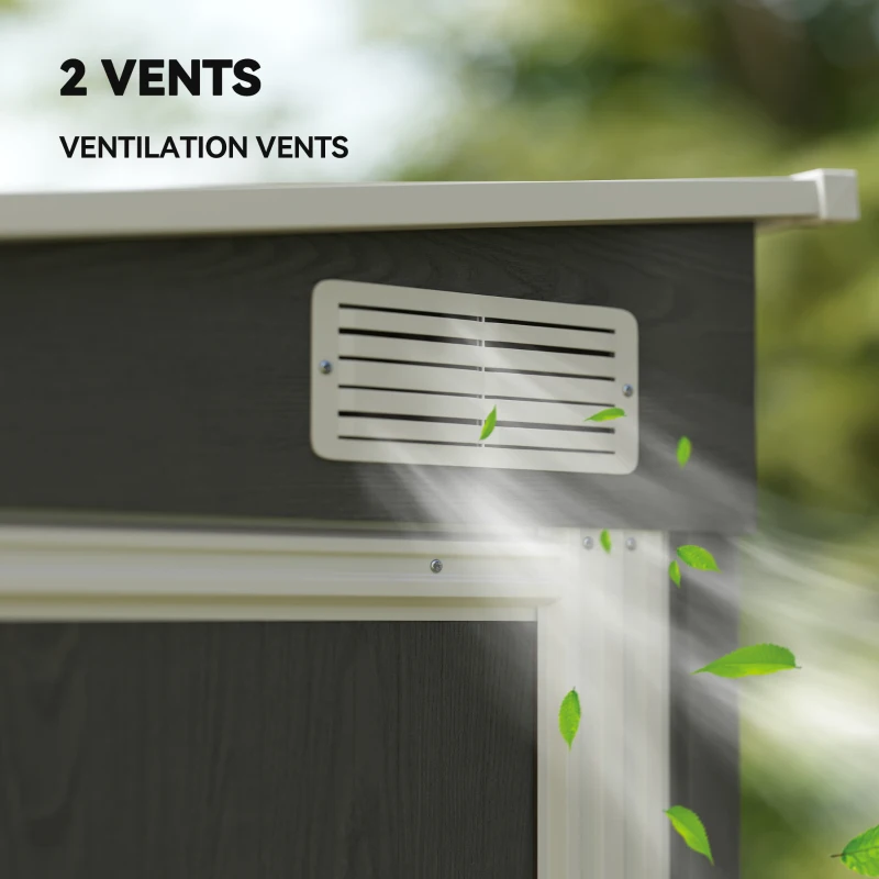 Two ventilation slots: Brings air inside metal garden shed, helps keep it fresh.