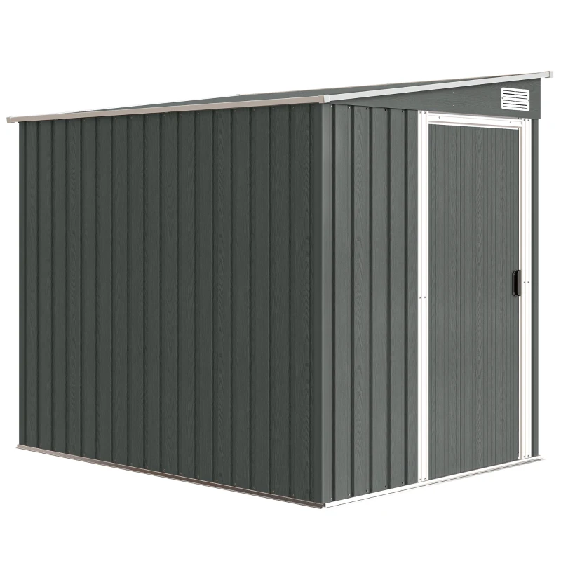 Add storage to your outdoor space with this Outsunny 5ft x 7ft Lean To Metal Garden Shed with Foundation Grid – Grey.