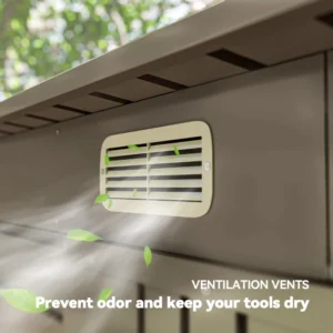 Two ventilation slots: Brings air inside garden storage shed, helps prevent odour and keeps tools and equipment dry.
