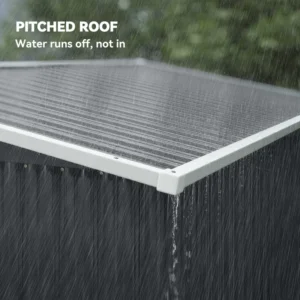 Stable construction: Built from galvanised steel with colour-coated, this outdoor shed features a reinforced bottom and frame for improved stability. The rust-resistant materials and solid structure are designed to withstand everyday outdoor conditions