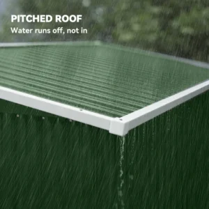 Stable construction: Built from galvanised steel with colour-coated, this outdoor shed features a reinforced bottom and frame for improved stability. The rust-resistant materials and solid structure are designed to withstand everyday outdoor conditions