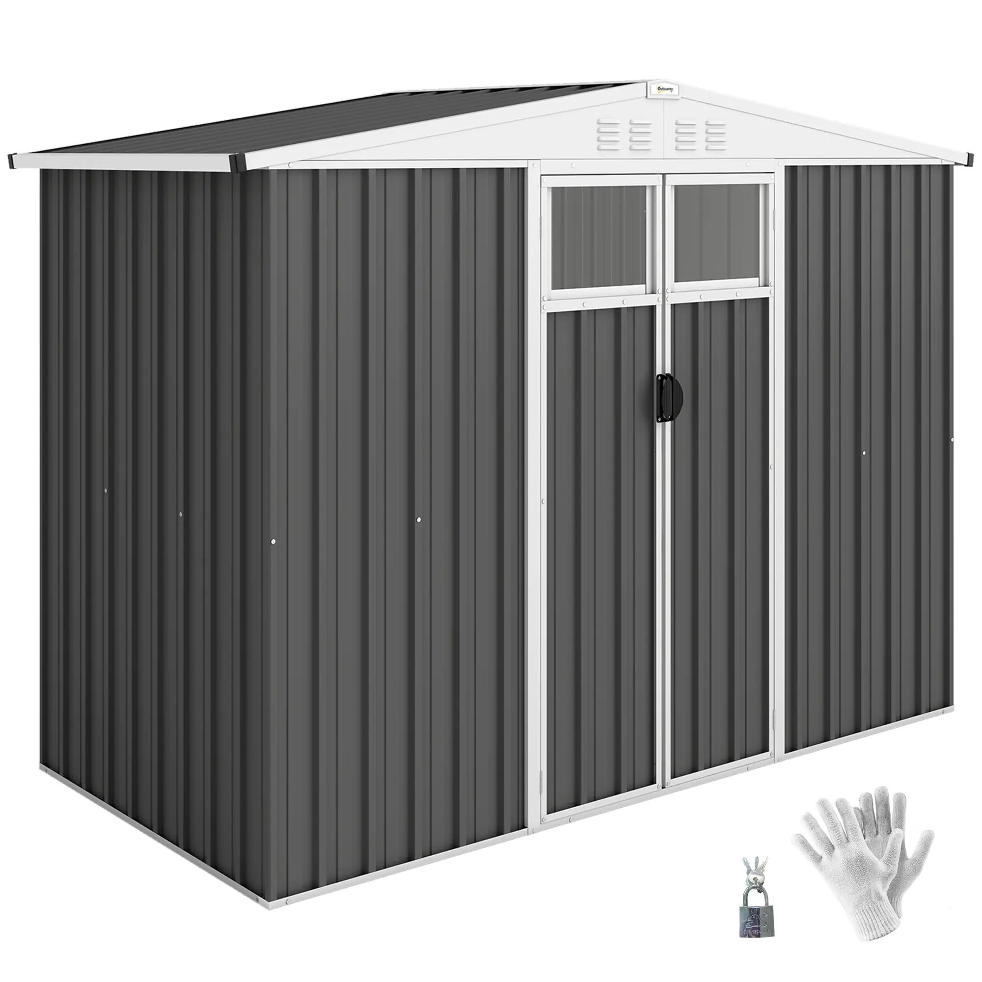 Outsunny 8ft x 4ft Metal Apex Tool Shed – Dark Grey