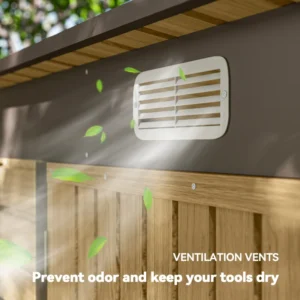 Two ventilation slots: Brings air inside garden storage shed, helps prevent odour and keeps tools and equipment dry.