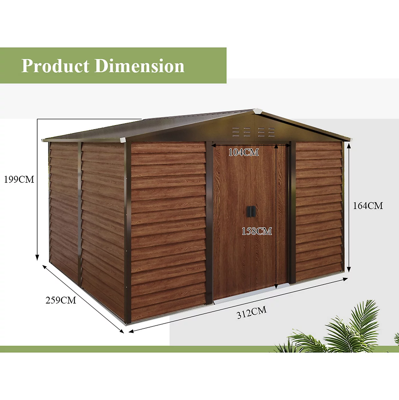 Large Storage Capacity: This garden storage shed is 10x8ft, large internal storage space can accommodate a variety of items, it’s an ideal storage shed for lawn mower, grill, bicycles, garbage bin, garden furniture and garden tools.