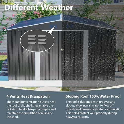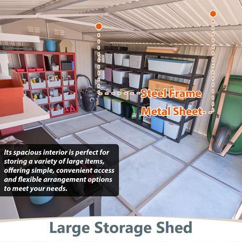 Built as a heavy-duty metal shed with galvanized steel panels, this Metal Garden Shed provides excellent strength, rust resistance, and long-term reliability.