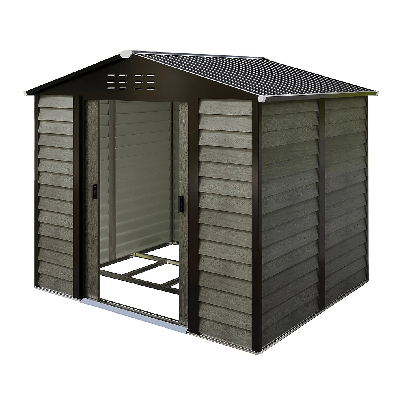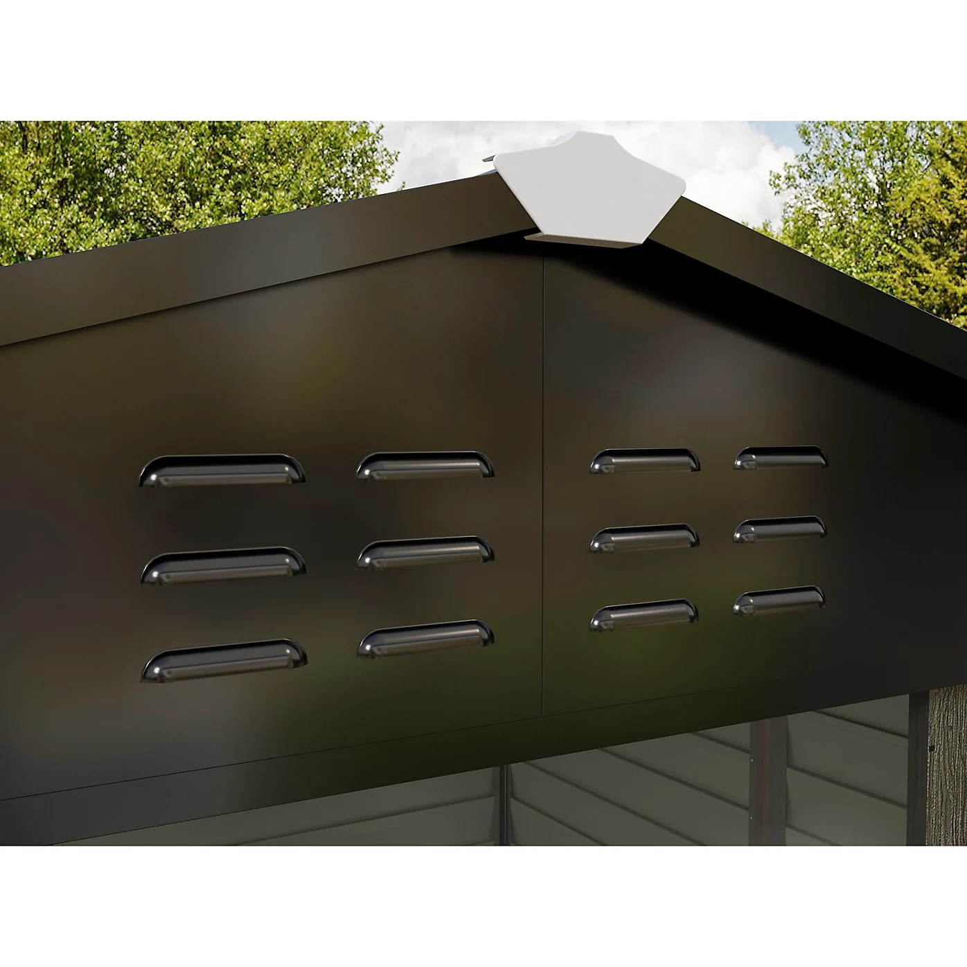 The Pro-Tect 8’x6′ Woodlook Metal Apex Shed with Foundation Grid – Grey features a minimalist design with premium-grade materials, perfectly combining aesthetic appeal with outstanding durability.