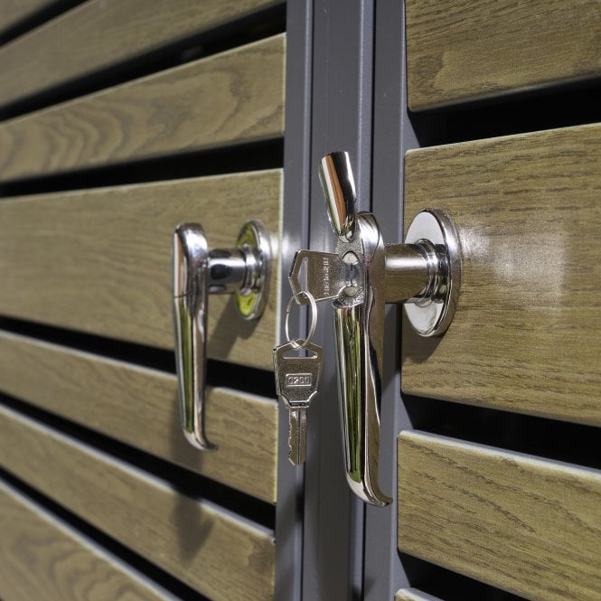 The Rowlinson Chelsea Premium Metal Quadruple Bin Store – Oak is a stylish and contemporary storage space to stow away your unsightly yet essential wheelie bins.
