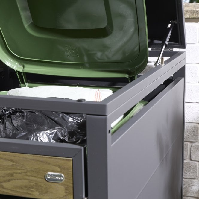 Constructed from robust powder-coated steel, Chelsea Bin Stores feature opening lids that are held open with gas struts and feature a soft close mechanism, along with individually opening and lockable doors to allow for easy access and security.