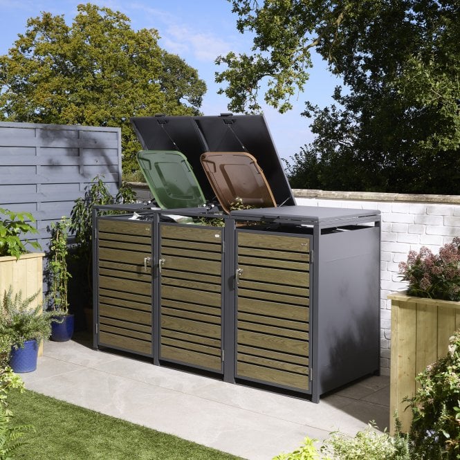 Ideally sized to hide away three standard 240 litre wheelie bins, the Chelsea Triple Bin Store is finished in an attractive oak with horizontal slats, combining style with practical outdoor storage.