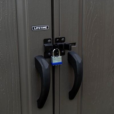 The Double Wall System (DWS) and steel reinforcement provide incredible strength for long-lasting performance. The UV-protected and weather-resistant build combined with the excellent rain and snow drainage allows this shed to withstand the elements effectively. The steel-reinforced, lockable doors (lock not included) will give you excellent security for your belongings. Stand firm on a slip-resistant floor and access your items easily with center-access doors. Enjoy the many options for item storage offered by the height-adjustable shelves, while skylights and screened vents provide light and air. Free up space in your garage and better organize your tools and equipment with a Lifetime 10′ x 8′ Shed.