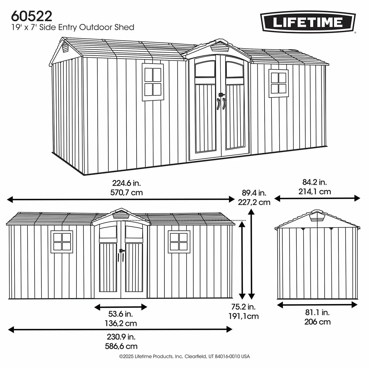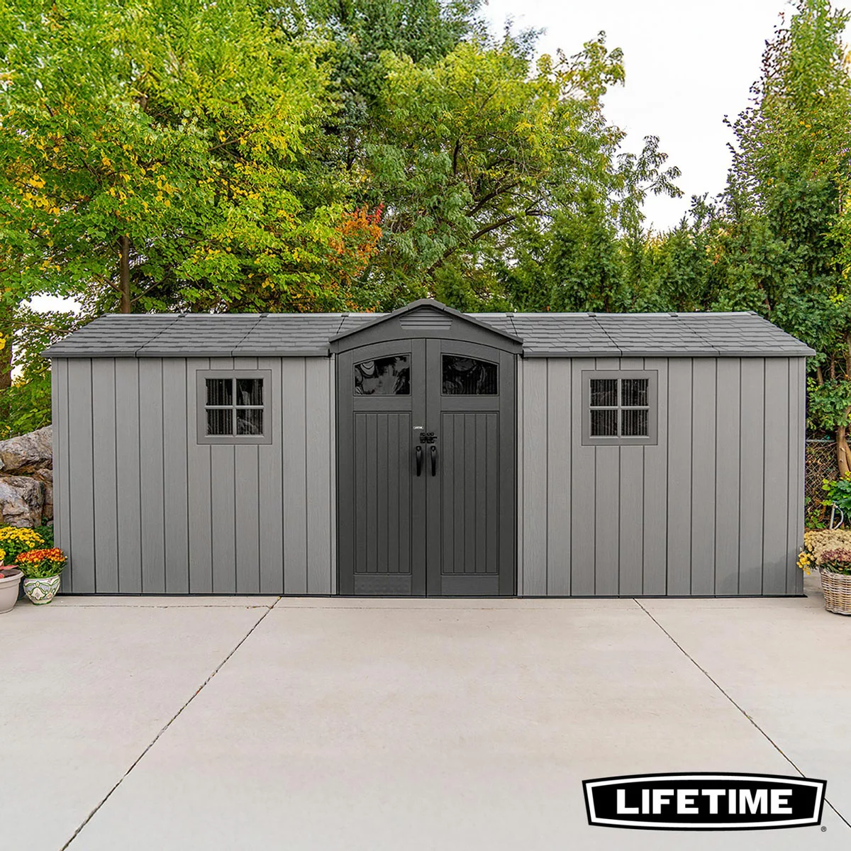 Lifetime 19ft x 7ft Heavy Duty Plastic Shed – Grey Model X60522