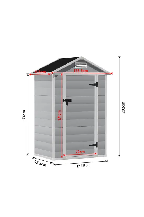 The vent ensures optimal air circulation, preventing moisture and keeping your tools dry. Whether you are tending to your garden or tackling home repairs, this tool shed offers excellent functional support, helping you efficiently realize every creative project and enjoy a pleasant working time.