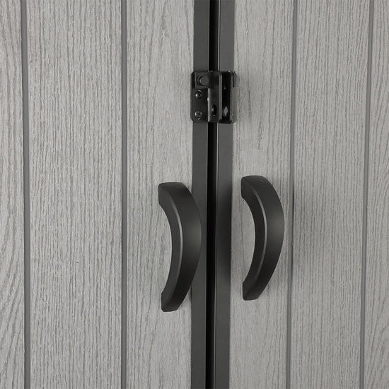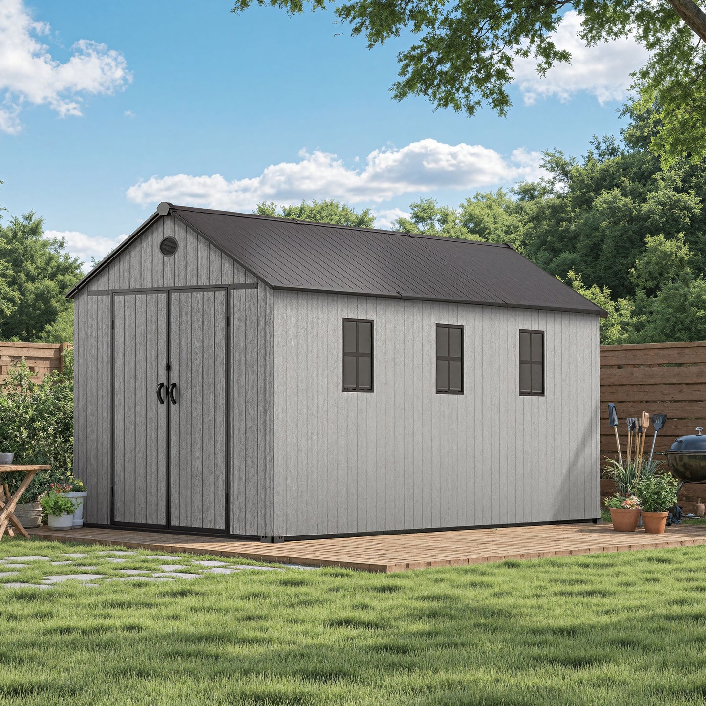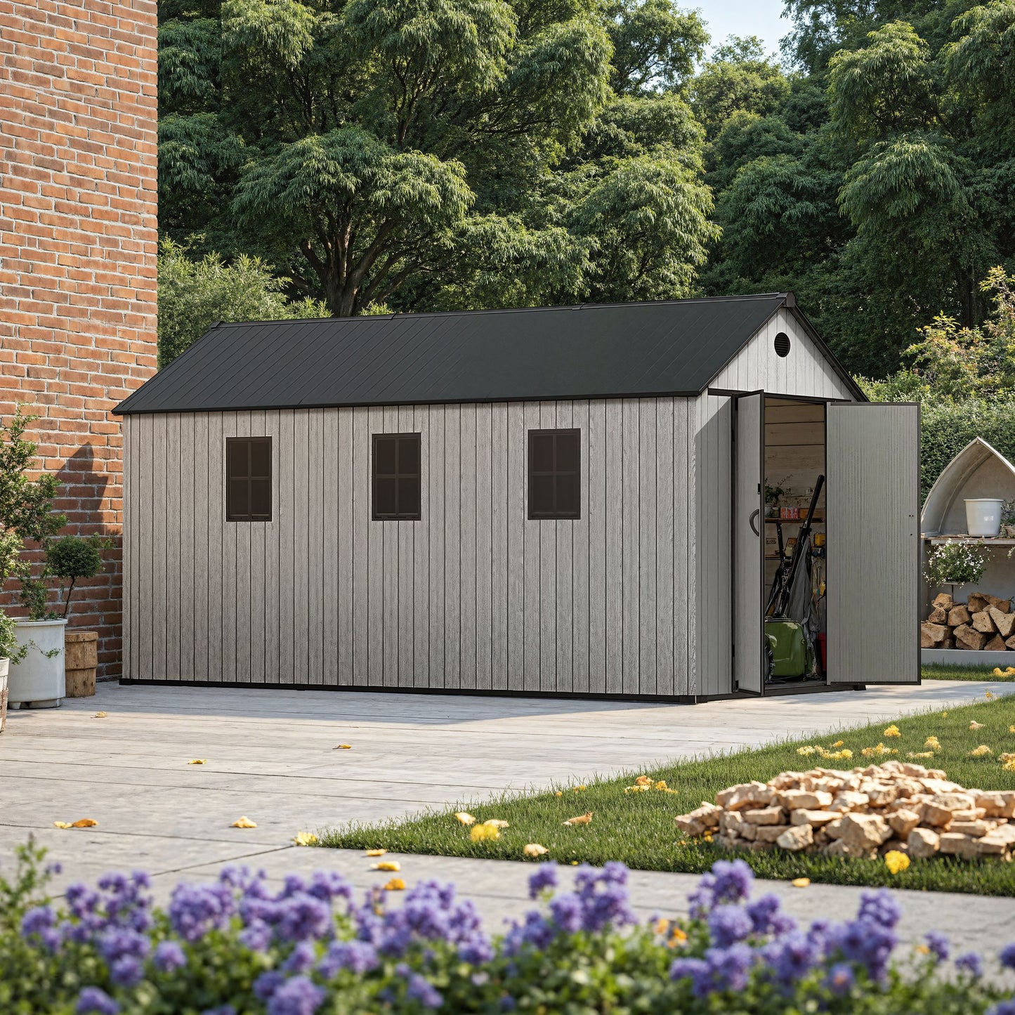 Constructed from 16mm thick PP plastic with a realistic woodgrain finish, it offers superior resistance to rot, rust, and weathering, ensuring your tools, equipment, and garden furniture remain safe and dry for years to come.