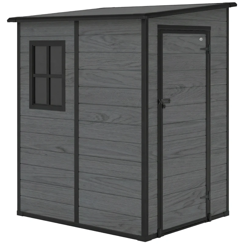 This Outsunny 4’x5′ Plastic Lean To Shed with Window – Wood Effect is a protective shelter for tools and equipment.