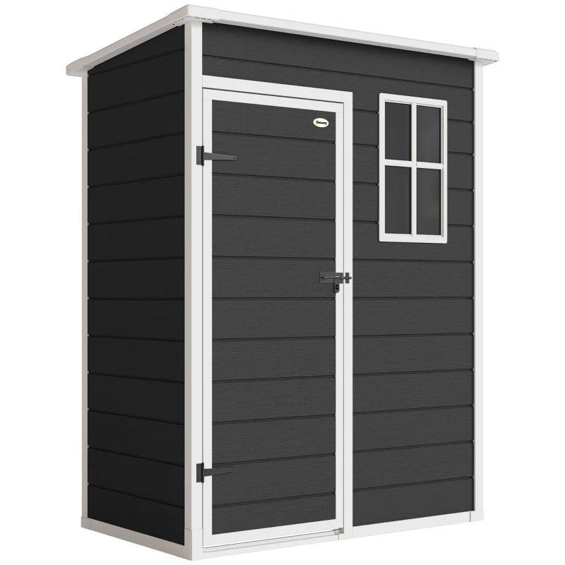 Add storage space and value to your garden when you use an Outsunny 5’x3′ Plastic Shed with Window – Black.