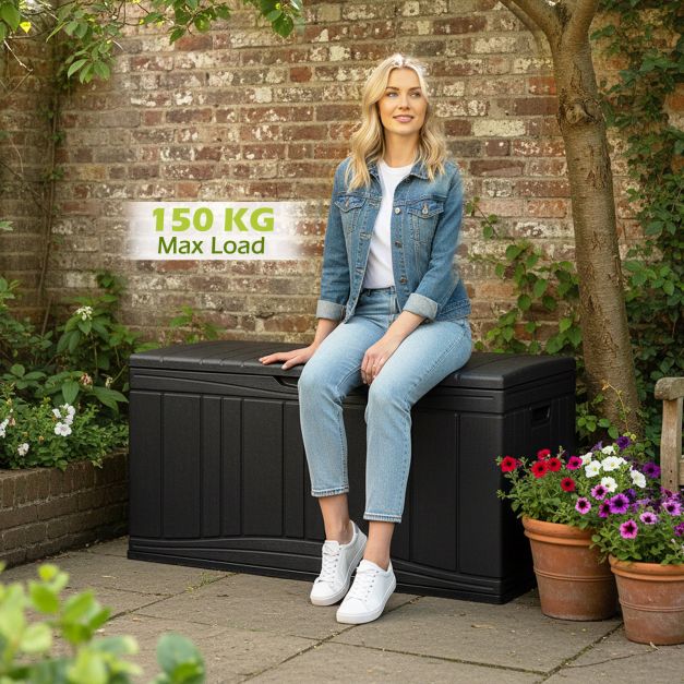Sit With Confidence: With a top load capacity of up to 150 kg, the deck box with lid closed doubles as an extra seat, making it a practical and versatile piece of outdoor furniture.