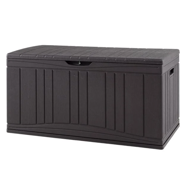 Boasting a massive inner capacity, thePro-Tect 300 Litre Patio HDPE Storage Box with Lockable Lid – Dark Brown safely stores cushions, tools, pool supplies, and more.