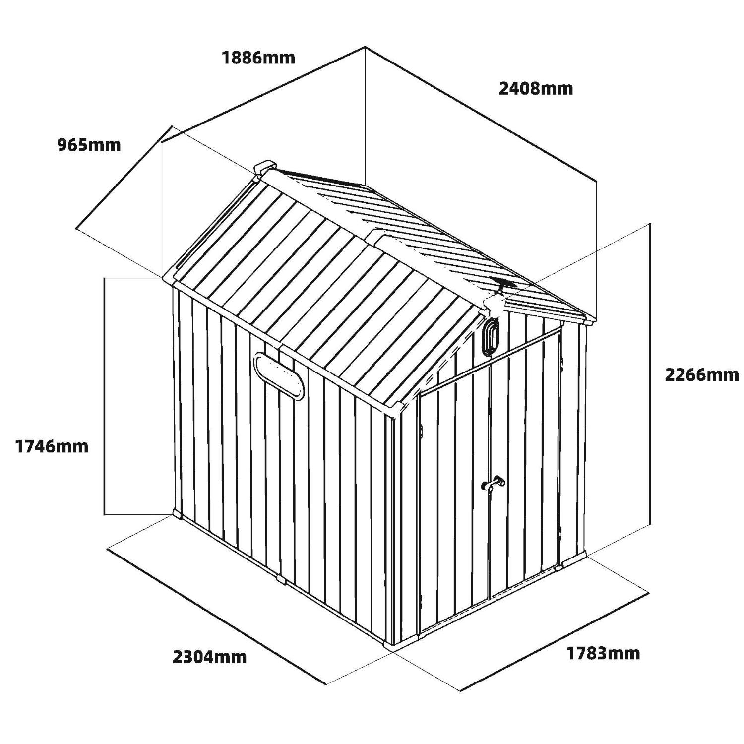 The shed is manufactured from high density plastic, reinforced with heavy duty internal metalwork for maximum strength and is all weather resistant, providing year-round durability against the elements with zero maintenance required.