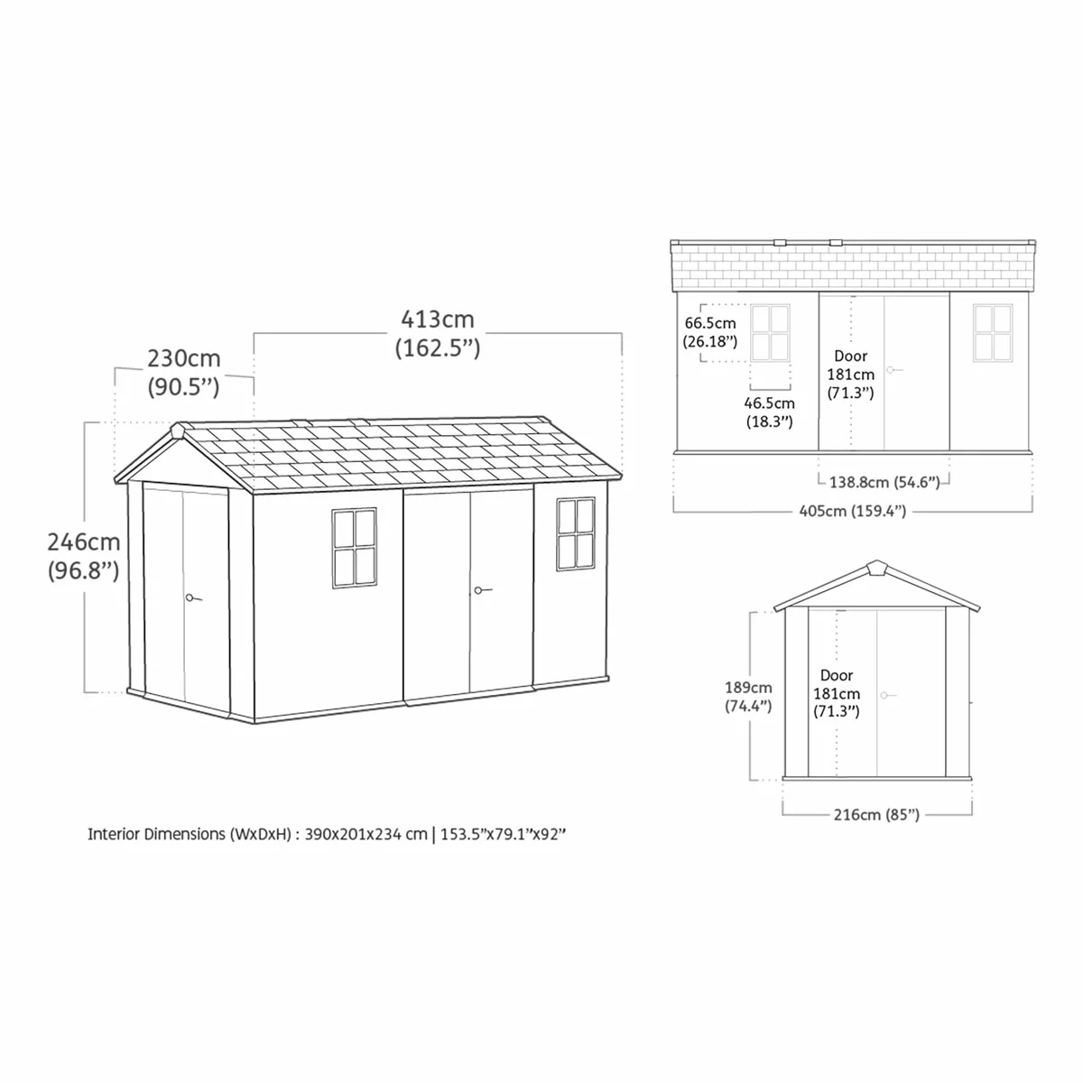 The Keter 13’x 7.5′ Newton Plus Plastic Shed – Dual Entry is an extremely durable and strong, double-wall constructiom garden shed.