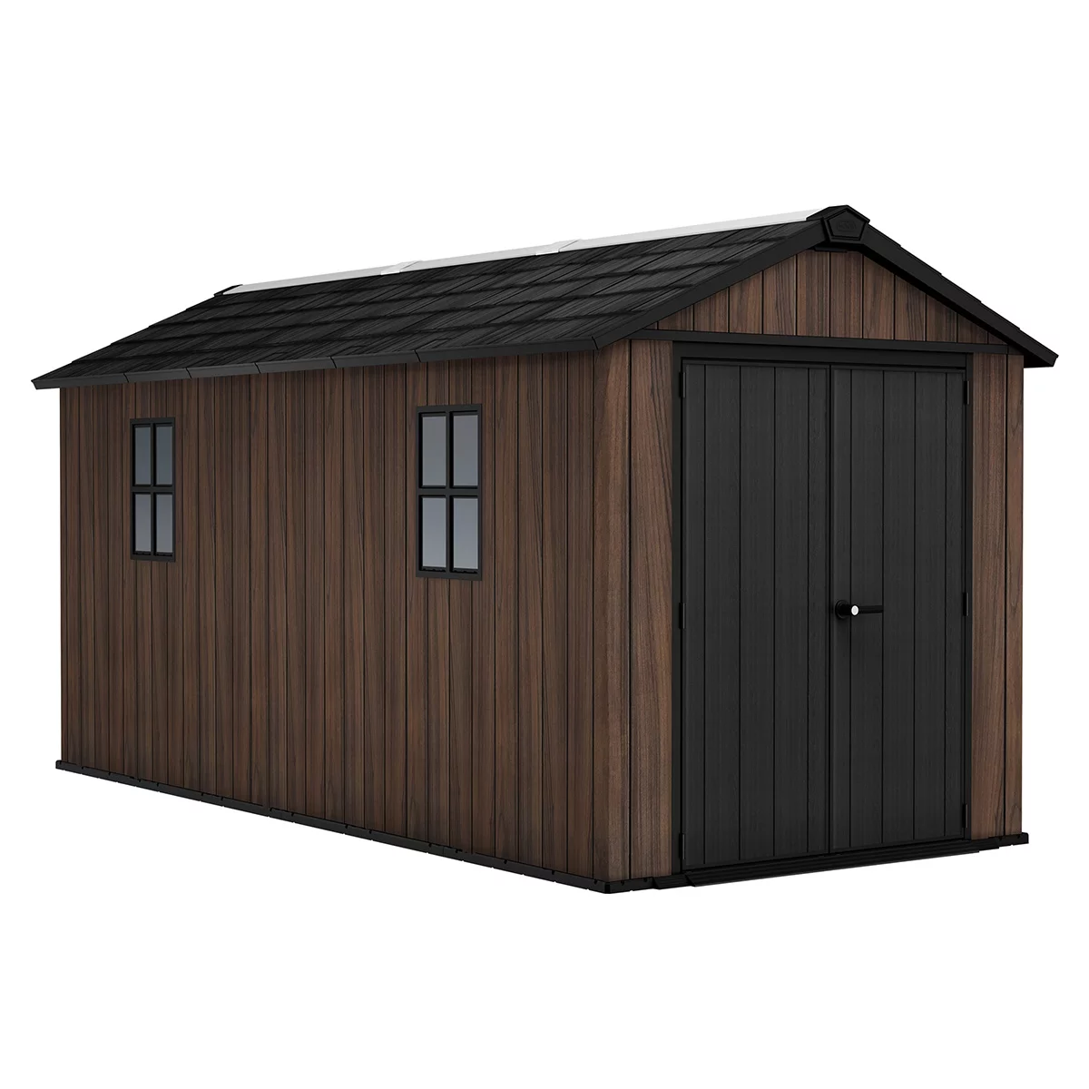 Keter 7.5’x 15′ Rosewood Plastic Shed with Front Entry