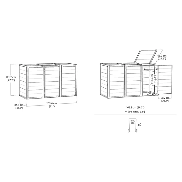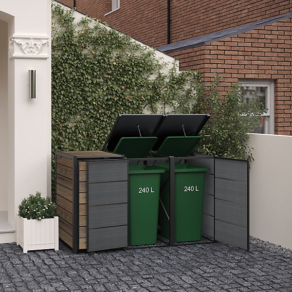 Perfect for storing up to three 240L wheelie bins, the Cortina Hideaway is designed for easy access and convenience thanks to the generous front doors.