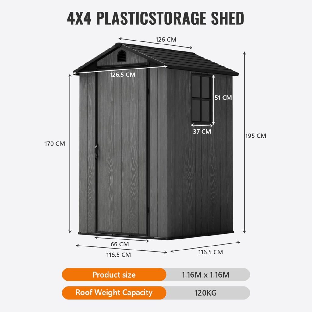 The Pro-Tect Essential 4’x4′ Plastic Resin Garden Shed with Integral Floor – Dark Grey is designed to protect your valuables with a weather-resistant enclosure, shielding your items from rain, snow, and the elements—ideal for garden outdoor storage.
