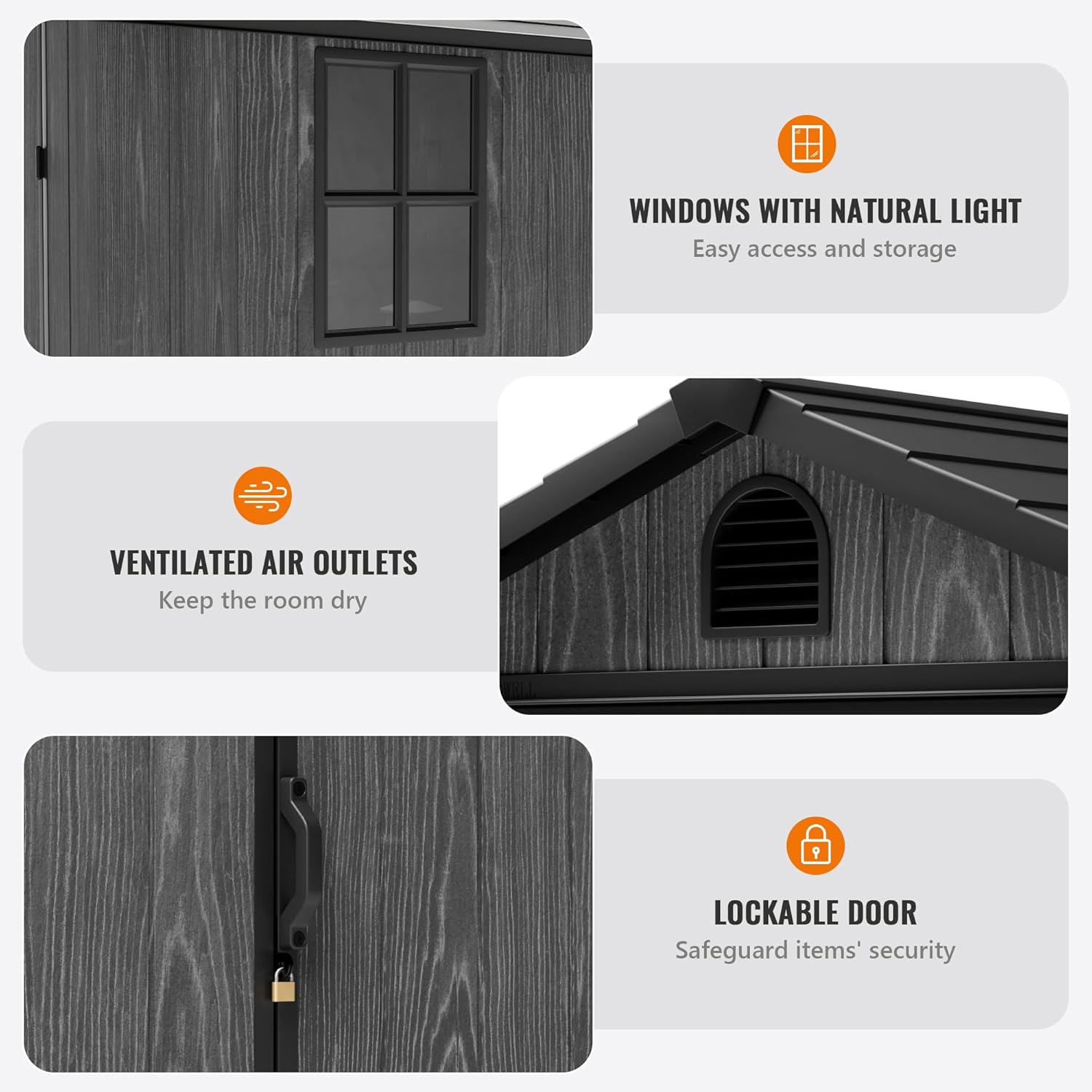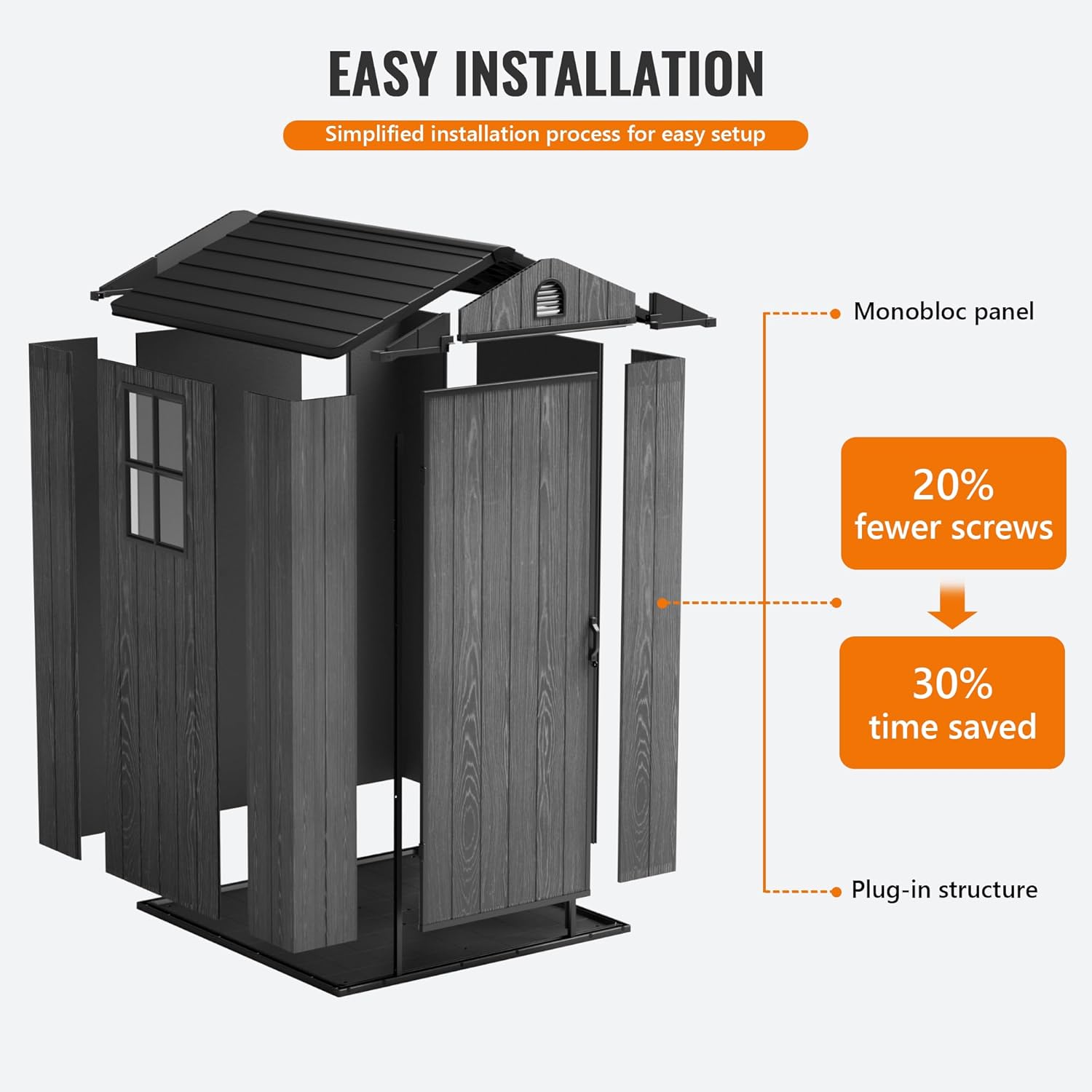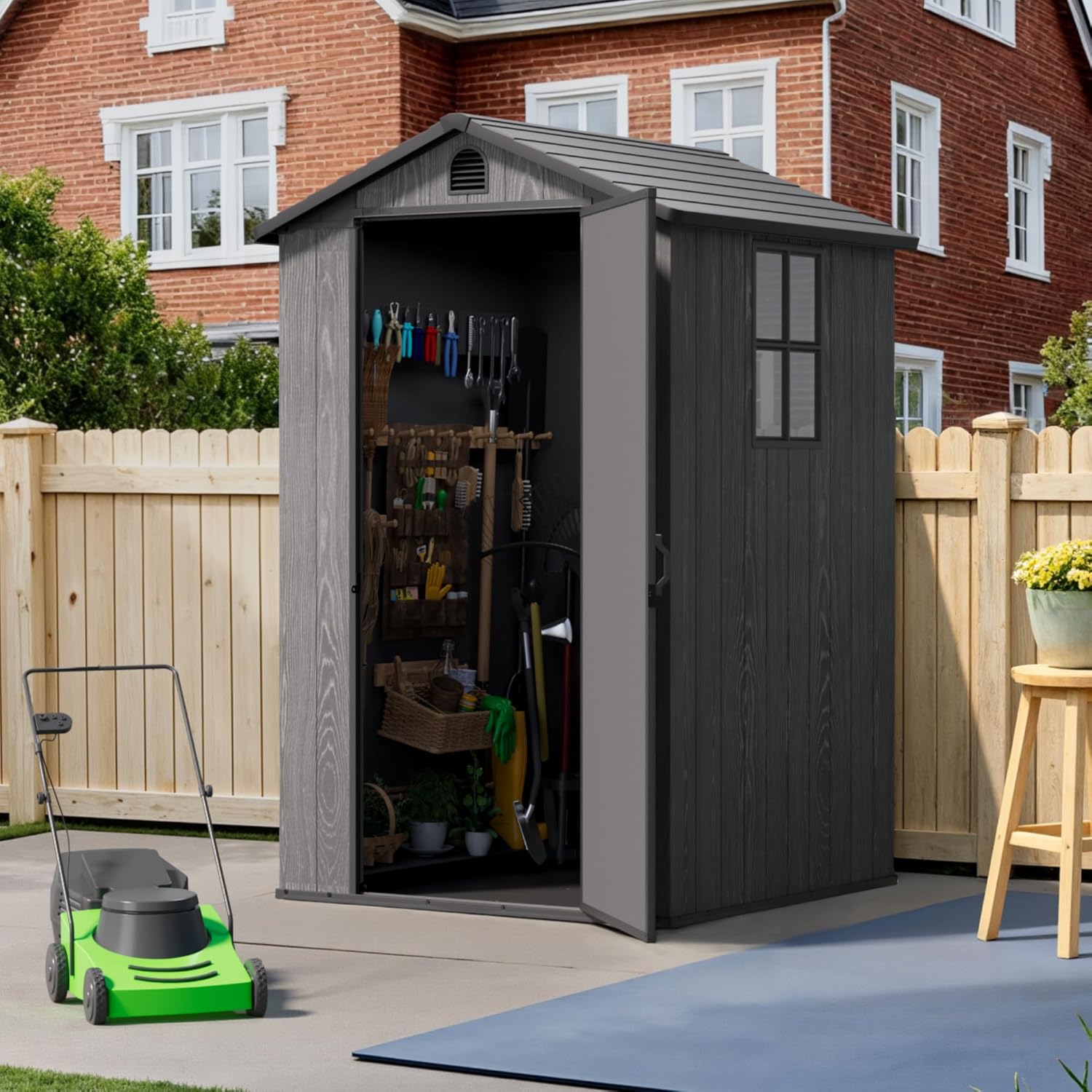 Crafted from heavy-duty resin panels, this shed offers exceptional resistance to rain, wind, and UV rays.