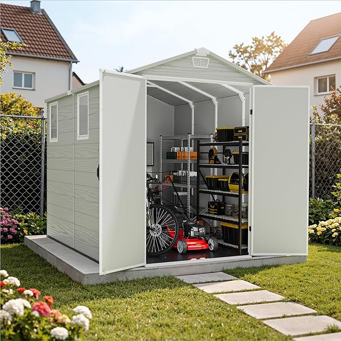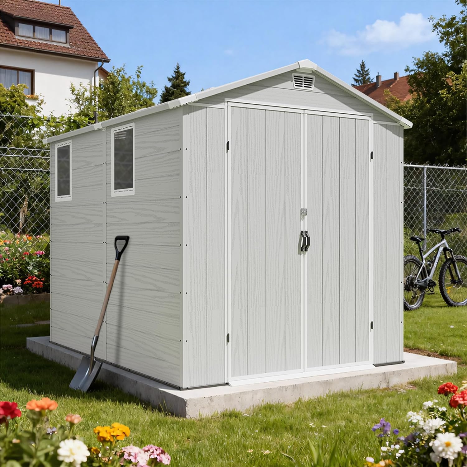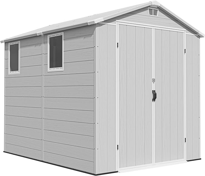 The Pro-Tect Essential 6’x8′ Plastic Resin Garden Shed with Integral Floor – Light Grey is designed to protect your valuables with a weather-resistant enclosure, shielding your items from rain, snow, and the elements—ideal for garden outdoor storage.