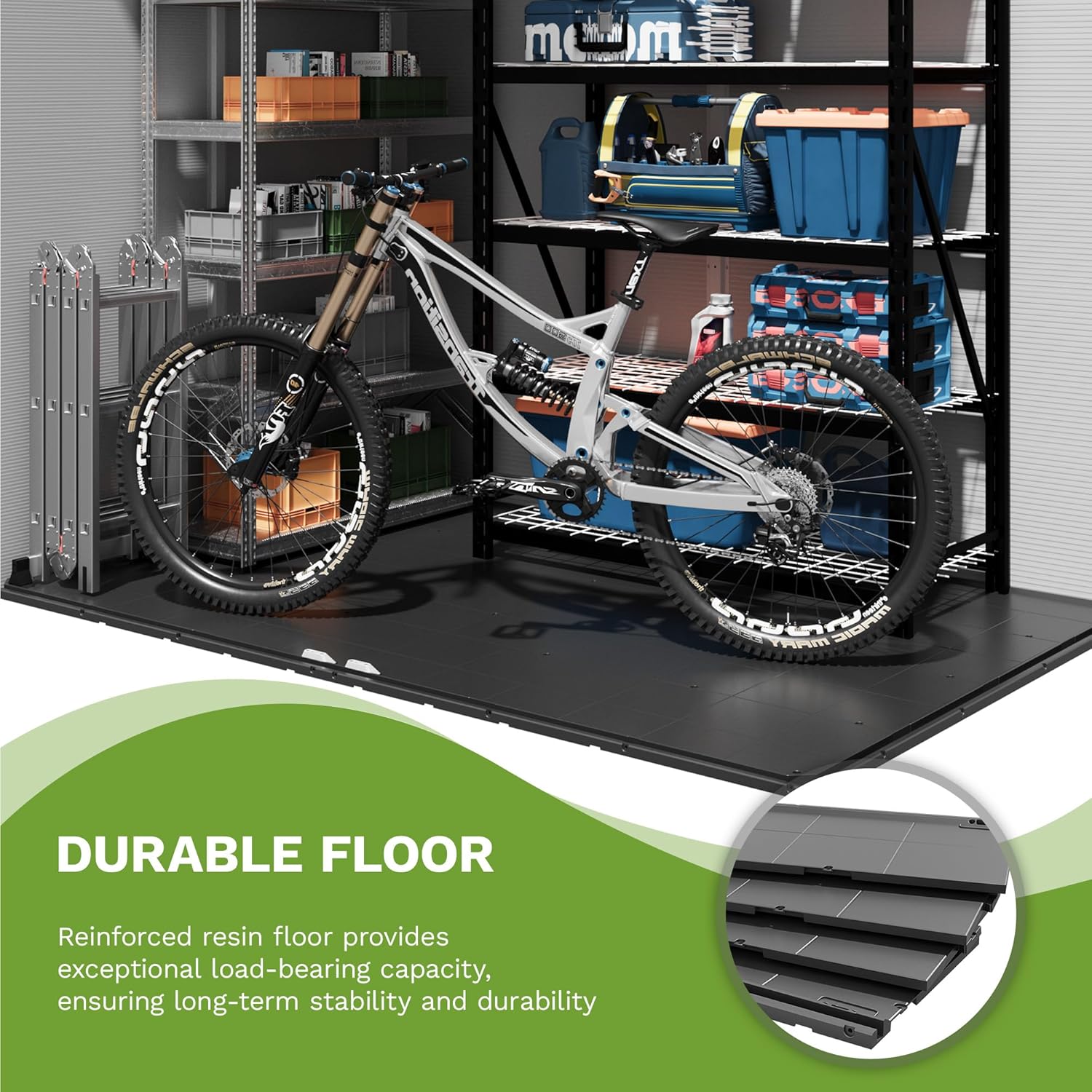 This generously sized shed is the perfect solution for a clutter-free garden, patio, or backyard, effortlessly storing everything from gardening tools and lawnmowers to bicycles, ladders, and shelving units.