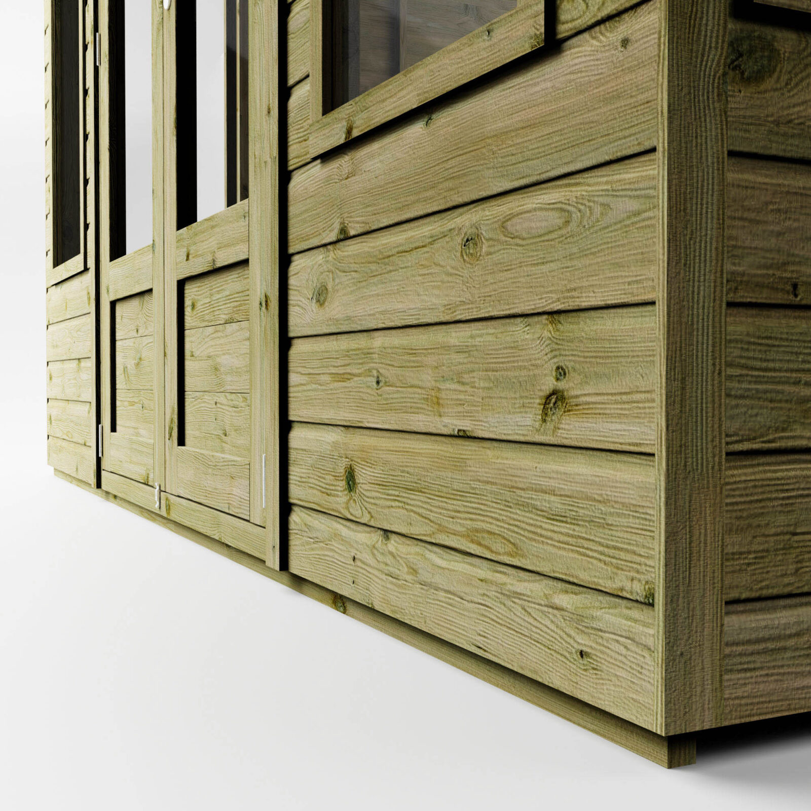The Mercia 10’x 8′ Premium Helios Green Dipped Treatment Traditional Summerhouse – Curved Roof provides a large open space to relax in on a bright summer’s day.