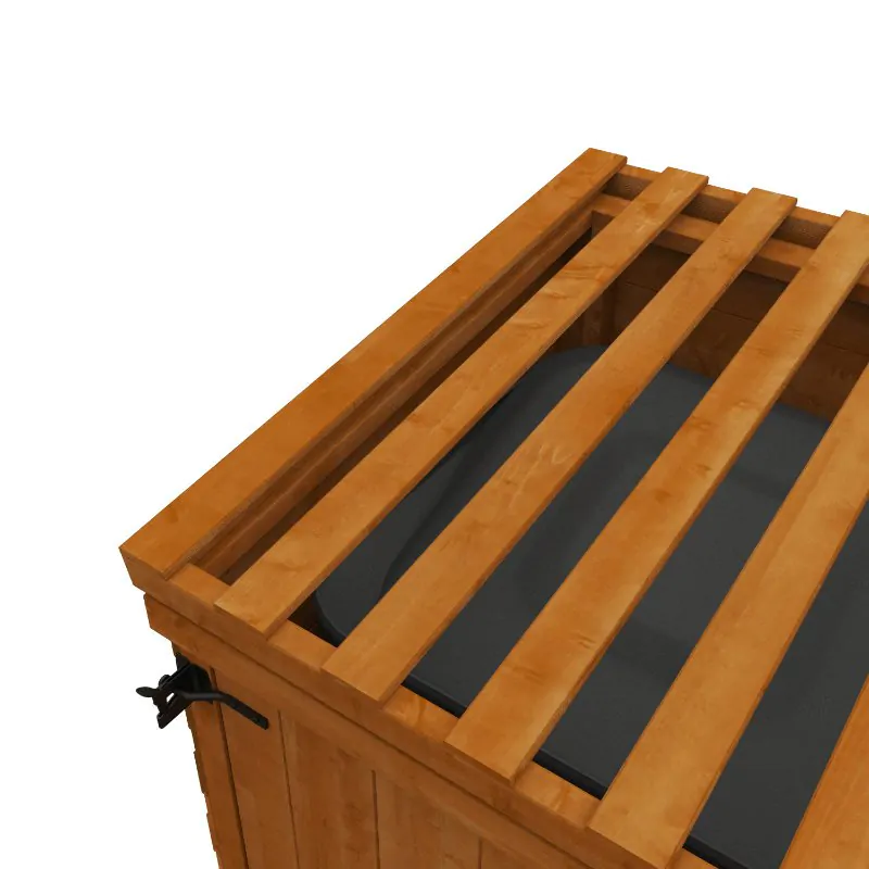 Complete the look of your garden by concealing those necessary but unsightly recycling bins in a strong and secure surround. The innovative internal chain allows you to lift the bin store and wheelie bin lid together for ease of use. Accessing the bins is simple thanks to the simple but very effective latch allowing you to remove each wheelie bin at any time. The slatted lids allow air to circulate and vent which prevents trapping unpleasant smells inside the store. The bin store is also available in single and double sizes to suit your requirements.