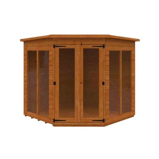 The design makes it well suited to the corner of your garden, allowing you to save space whilst enjoying the view. The full pane double doors and windows allow in maximum light and provide an excellent panoramic view of your green space.