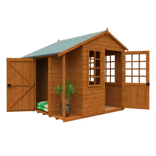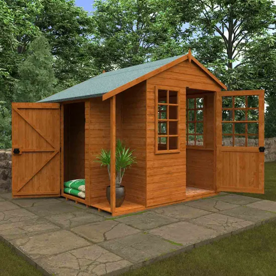 The summerhouse is completed with door pull and georgian style doors and windows. The side store room gives you enough space to store your garden equipment resulting in you enjoying your summerhouse clutter free.