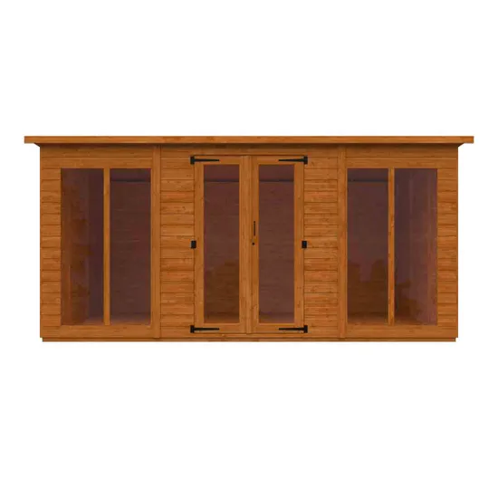 Introducing the Pro-Tect Timber 14’x8′ Shiplap Full Pane Summerhouse Workshop, a stunning addition to any garden. This premium garden building is crafted with precision from high-quality European softwoods, ensuring both style and durability. Available in eight versatile sizes, this modern summerhouse is perfect for a variety of uses, from a serene workspace to a leisure retreat.