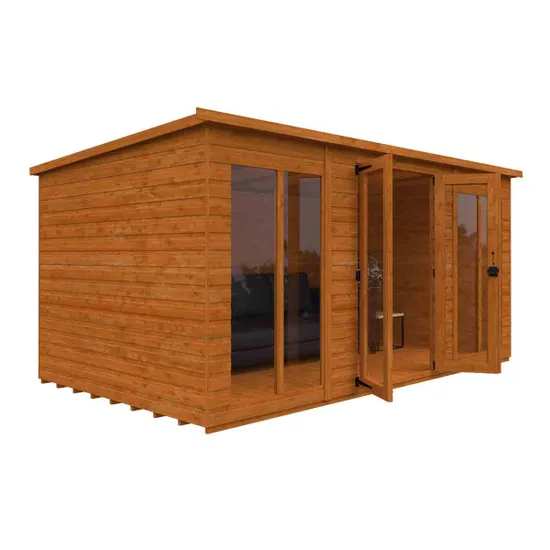 The sleek pent roof design, along with full-pane toughened glazed doors and windows, allows natural light to flood the interior, creating a bright and inviting atmosphere. The wide double doors provide easy access, while the robust construction is designed to withstand the unpredictable British weather..