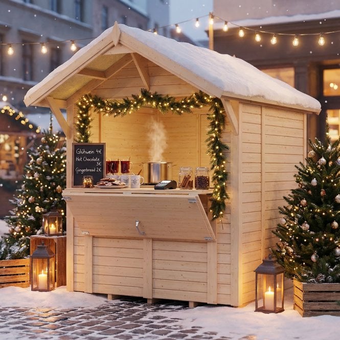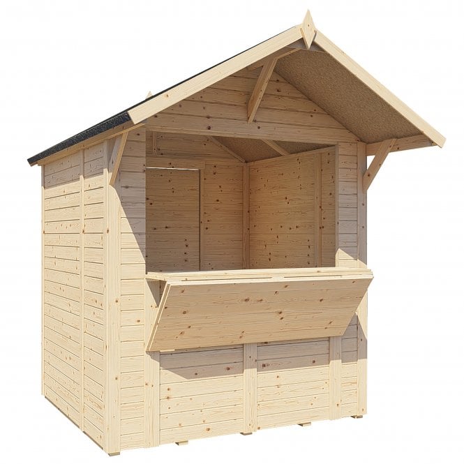 Whether in use as a bustling commercial hotspot at a Christmas market or festival, or a stylish wooden garden bar at home, the Bertilo Tongue & Groove Market Stall / Kiosk is designed to offer a welcoming and functional space no matter its use.